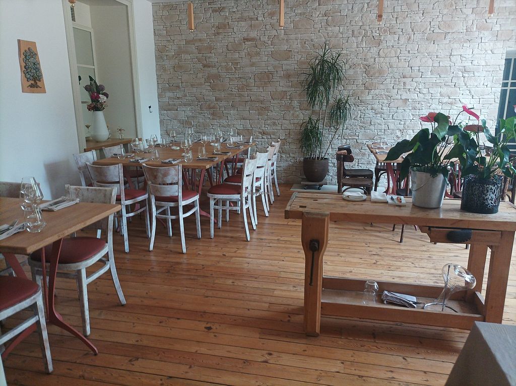 Serves meat, vegan options available. French bistronomic restaurant in the heart of Cholet. While there are no vegan dishes on the menu, vegan meals can be prepared upon request if notified during reservation. Outdoor seating is available on a shaded terrace with a small pond. Open Mon 12:00-15:30, Tue 12:00-02:00, Wed 19:30-22:00, Thu 12:00-02:00, Fri-Sat 19:30-22:00, Sun 19:30-22:30. Closed Mon & Wed.