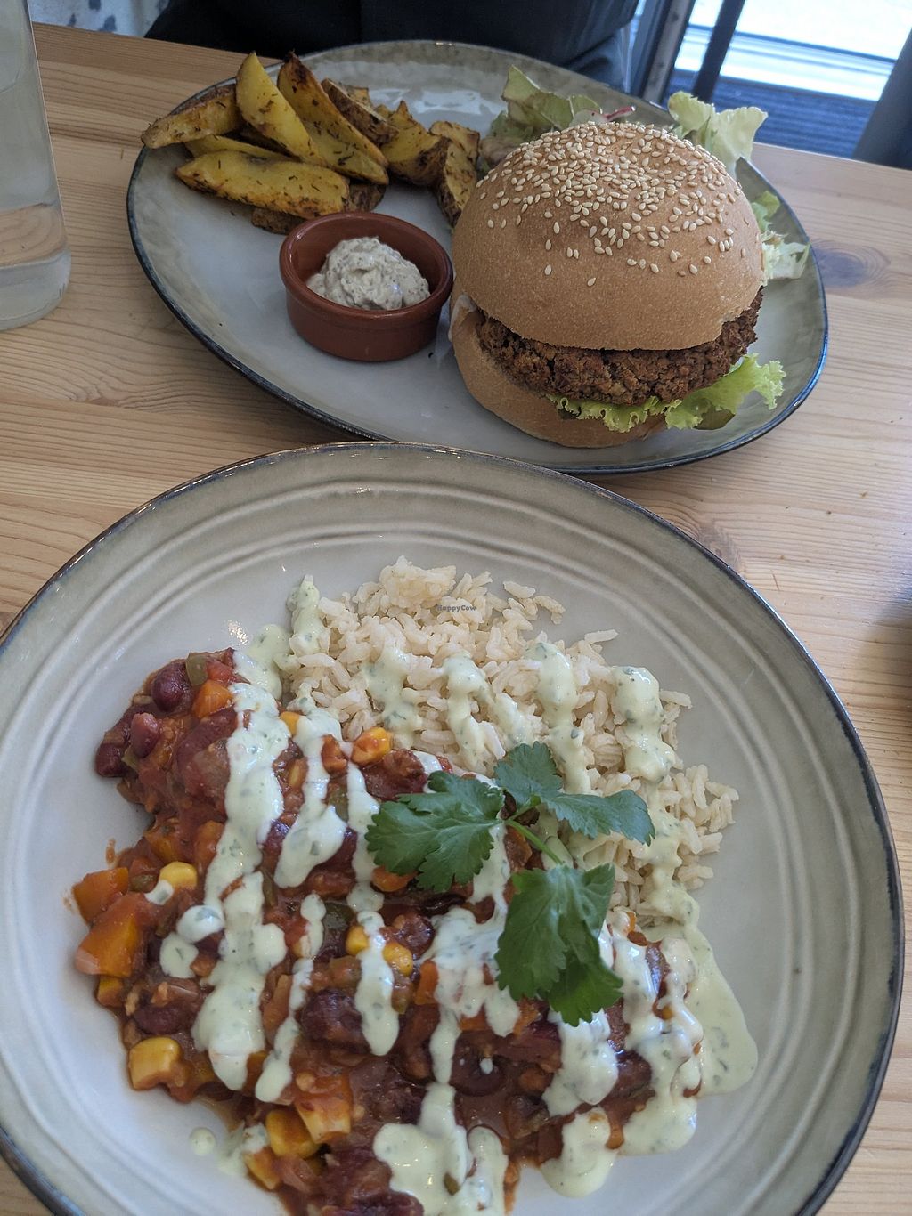 It was nice to sit in a cafe for lunch. There was a suggested menu or 3 items under each section (entree plat dessert). I ordered a cafe au lait with oat milk. I also had zucchini soup. I really like the seed toppings used in soups here and the herbs worked well. I also ordered a burger for my main. This was made up of red kidney beans, served on a nice roll with mushrooms and pickles and lettuce and onions. Tasted really fresh and the ingredients mixed in worked well. I loved the potato wedges. I was too full by this stage to order dessert unfortunately. My partner had the lasagne which I tried. It had a really nice herb flavour and the pasta was soft. He also had a cola which I really enjoyed.