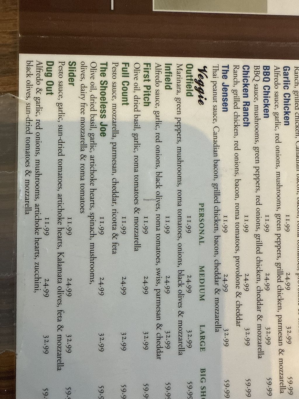 Lots of options to build your own or get the Shoeless Joe that is on the menu. Will definitely be returning when I get the craving for pizza!