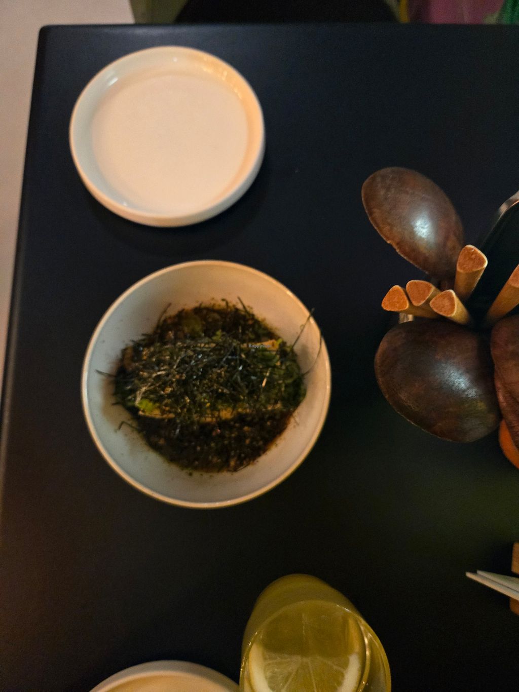 Serves meat, vegan options available. Japanese restaurant with vegan choices. Menu is clearly labeled and includes vegan ramen bowls and appetizers such as grilled green beans and corn balls. Open Wed-Sun 16:30-22:00. Closed Mon-Tue.