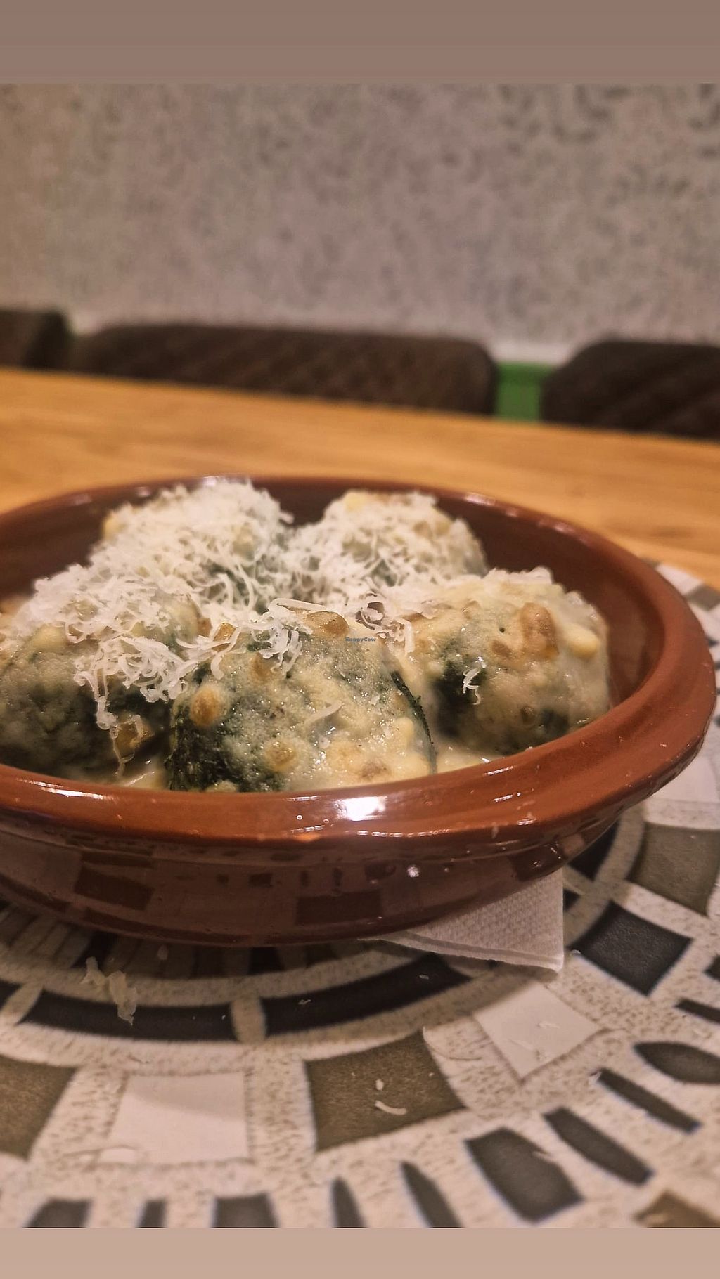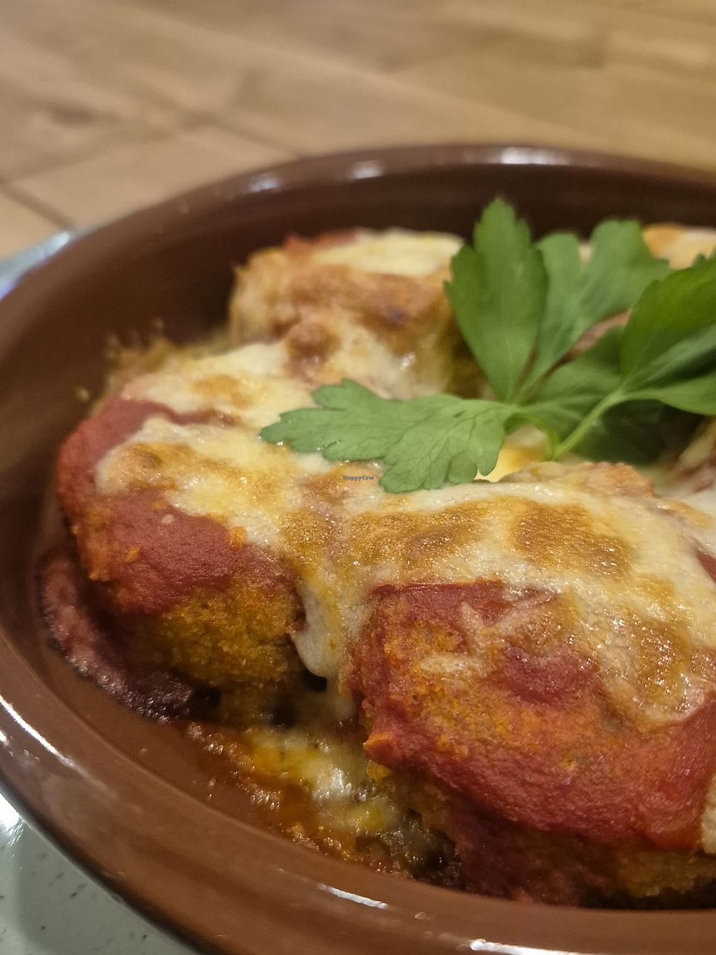 Starter with portobello mushrooms filled with rice cream and onion and…