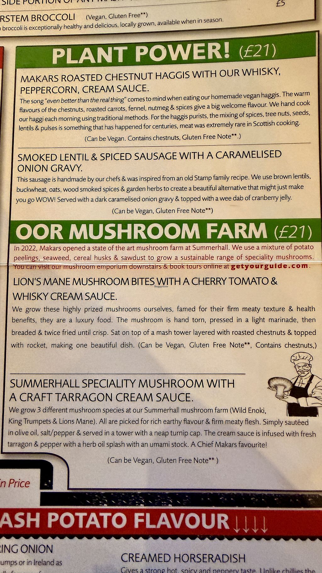 Serves meat, vegan options available. Scottish restaurant specializing in mashed potatoes with customizable meals consisting of a protein and mash. Vegans can choose from vegan haggis, vegan sausage, two mushroom dishes and vegan mash. Open Mon-Thu 12:00-20:30, Fri-Sat 12:00-21:30, Sun 12:00-20:00. Open everyday throughout the year except 24th, 25th & 26th December.