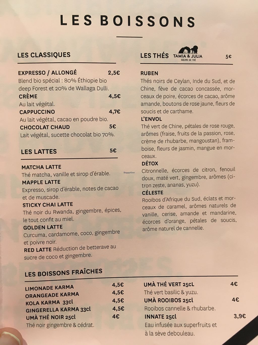 Serves meat, vegan options available. Clothes shop with a hidden restaurant at the back of the shop. All vegetarian apart from one meal, at least 50% vegan. Half of the desserts and the main dishes are vegan. Drinks are mostly vegan. All the lattes are made with non dairy milk although one is made with honey. Reported closed March 2023.