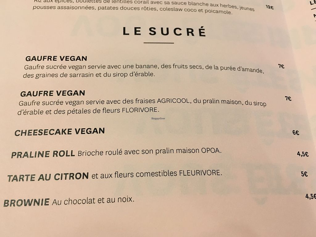 Read moreI tried both vegan gaufre. The one with local strawberries is good, very sweet with the pralin. The one with banana is more original because of the different ingredients. I highly recommand it !