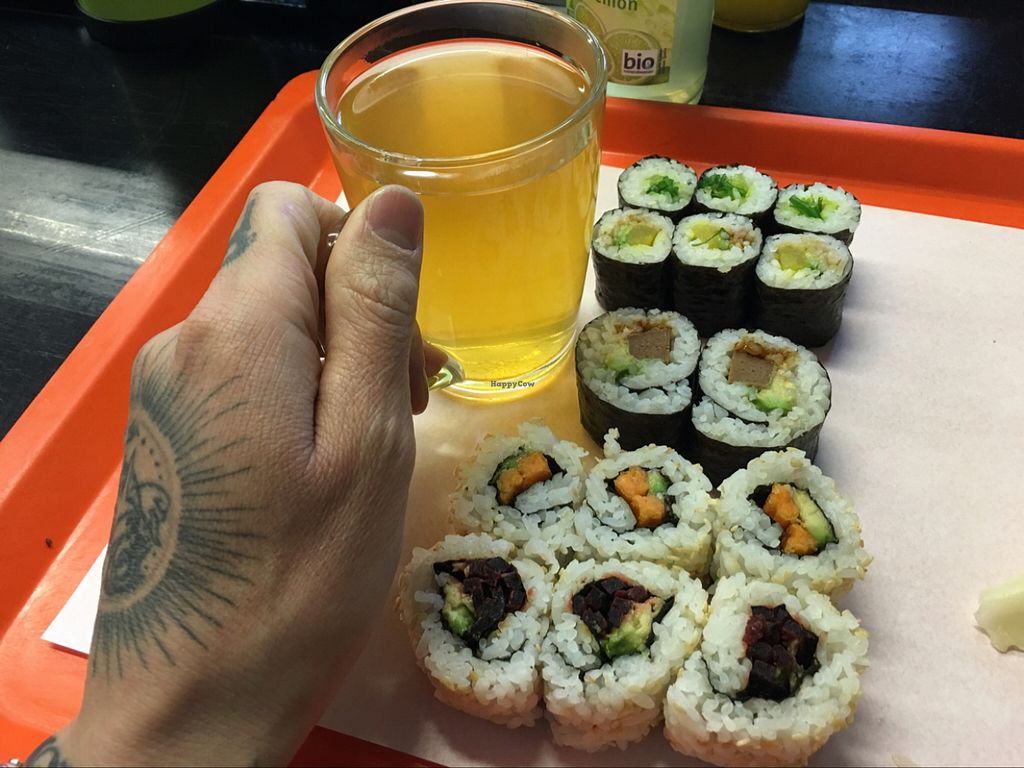 nice lil restaurant that offers vegan sushi only plus three different desserts. between ordering our meal and us eating it only two minutes passed by. all of the different variations we had were delicious and i can recommend this place to anyone, even if you don't eat sushi normally.