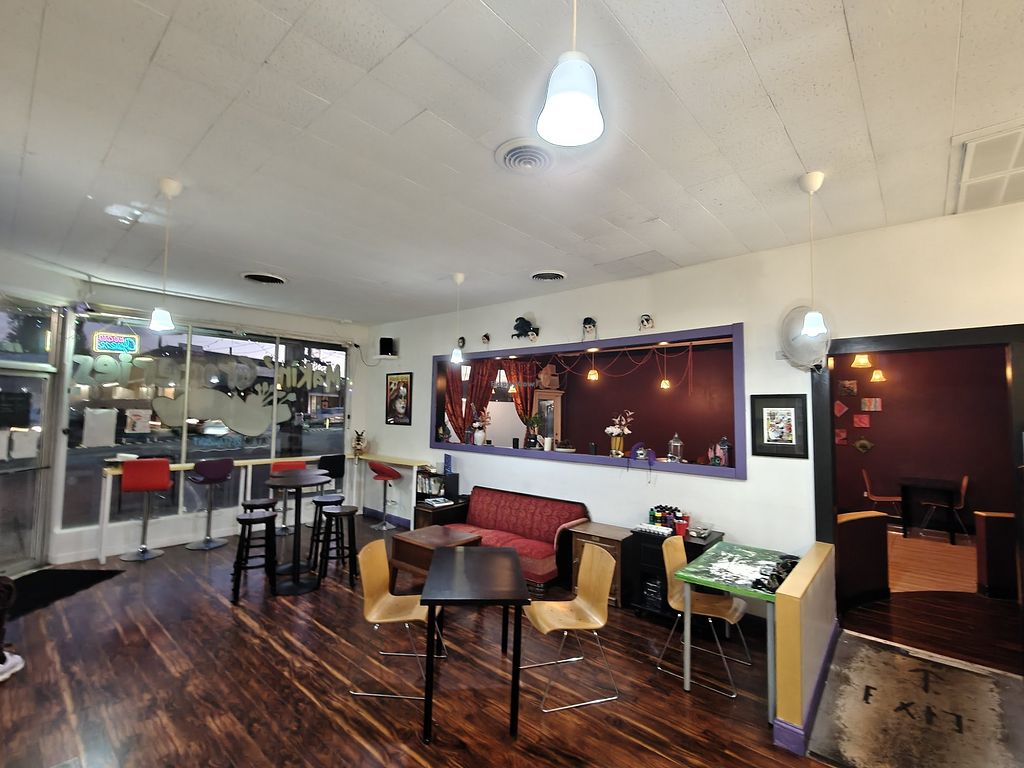 Killer options. Tofu and veggie options, clearly marked vegan and vegetarian. Rotating dessert specials and co-promotion with a bunch of local spots. Lots of open mic nights, D&D, etc