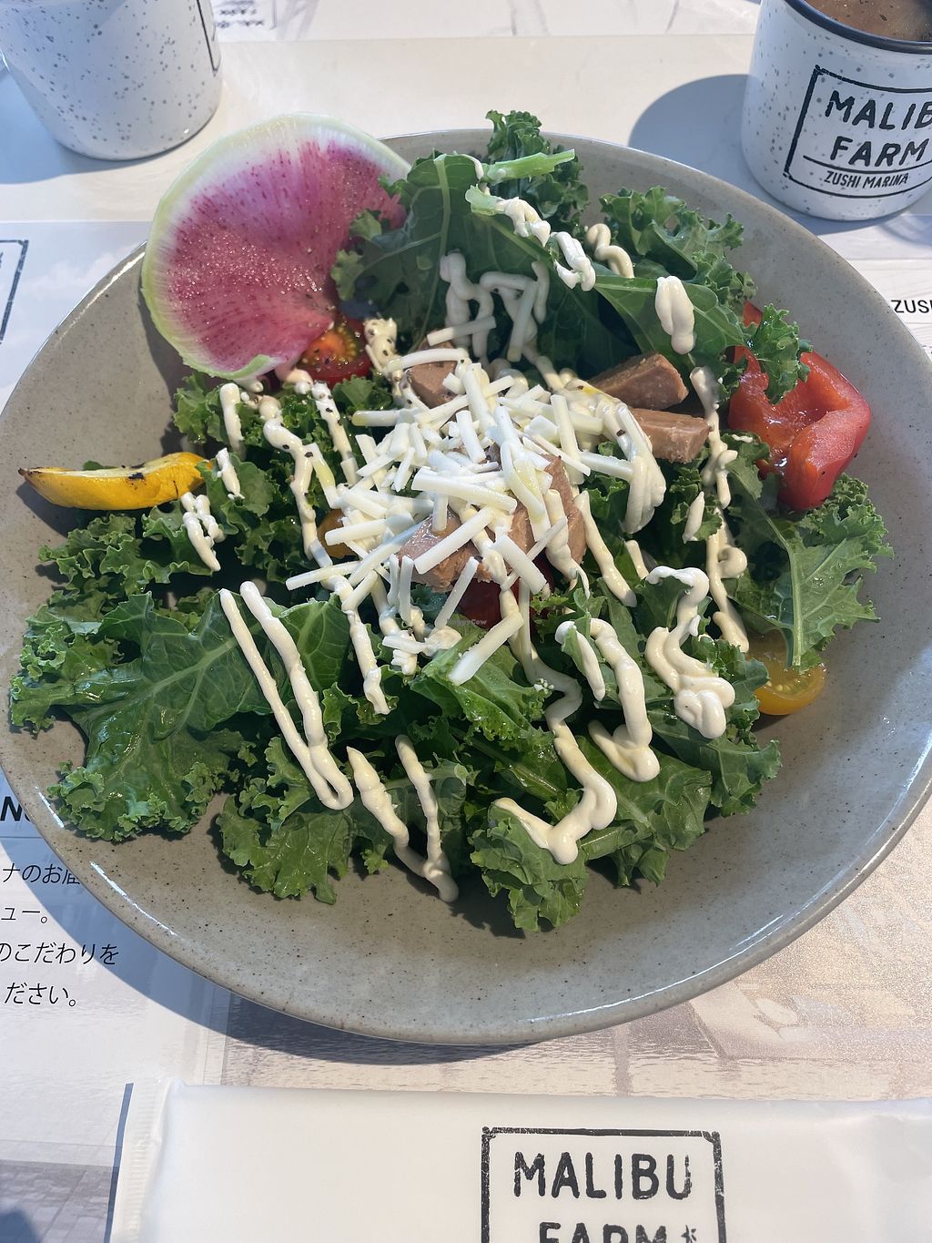 Serves meat, vegan options available. Resort restaurant serving western food. Offers a vegan set menu with a Ceasar salad and panini. Open Mon-Sun 11:00am-8:30pm.