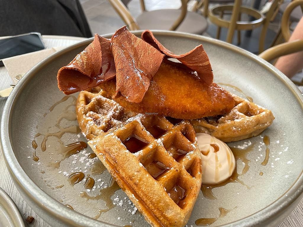 Delicious vegan options at this great spot. Sweet or savoury you will find something you enjoy. Great coffee too. We had ‘chicken’ and waffles and sweet fruit waffles.