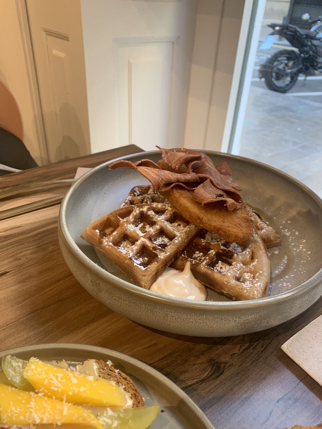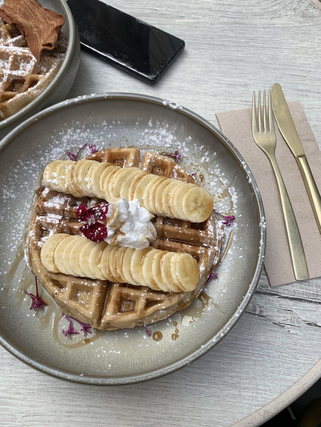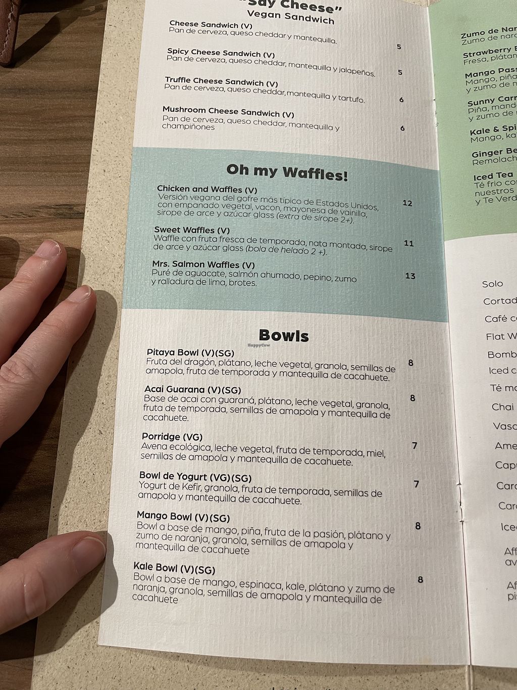 They have lovely food, price/quality ratio is great in my opinion. One thing I found a bit bizarre is that vegan options are marked as V and vegetarian as VG, which is the opposite of regular marking literally everywhere in the world. Lots of exciting options were vegetarian and wasn’t possible to swap regular cheese with vegan one for some reason. Waffles with chick’n is a fantastic dish, highly recommend, we’ve also tried chick’n burger - insanely good.