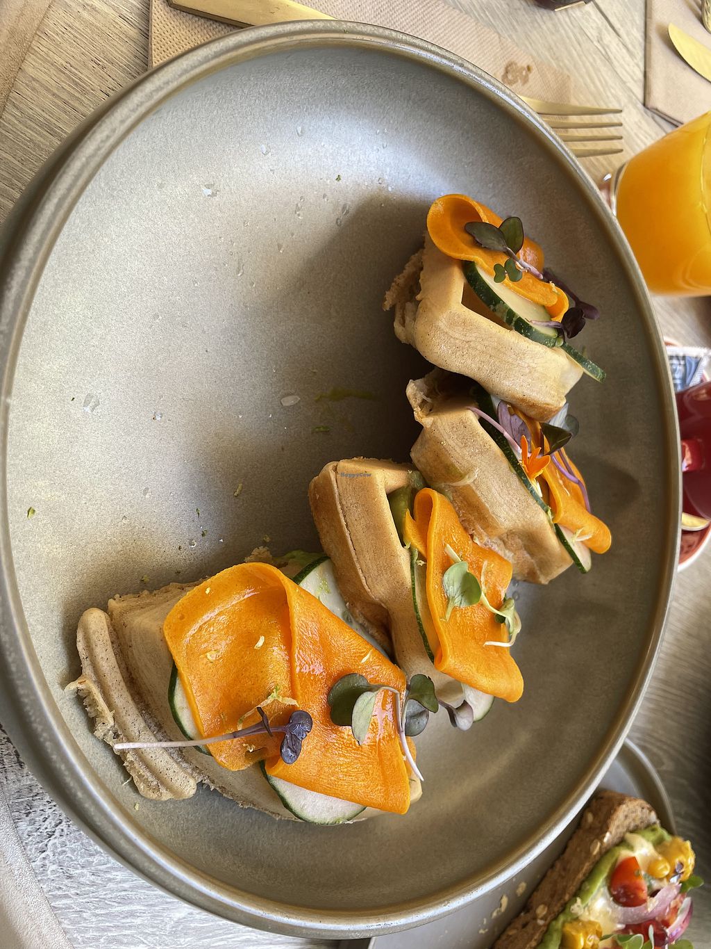 This place was gorgeous and the food was amazing. Here, things listed as vegan are labelled (V) and vegetarian are labelled (VG) so don’t get confused! We had 2 big plates, coffee tea and juice for €24