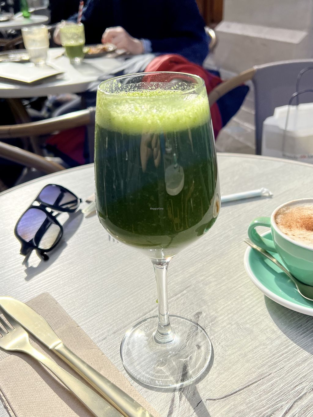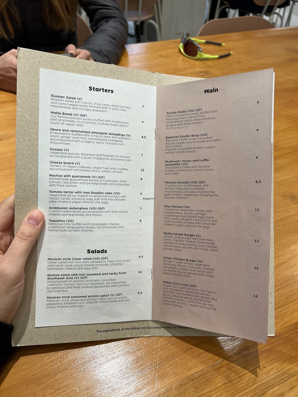 I had lunch here two days in a row during a business trip bc it was really close to the office. Most main dishes are vegetarian but many of them can be made vegan by avoding egg or dairy-based sauces. Food is tasty but servings are a bit scarce. A starter plus a main plus a bottle of sparkling water summed up over 22€ in both lunchs.