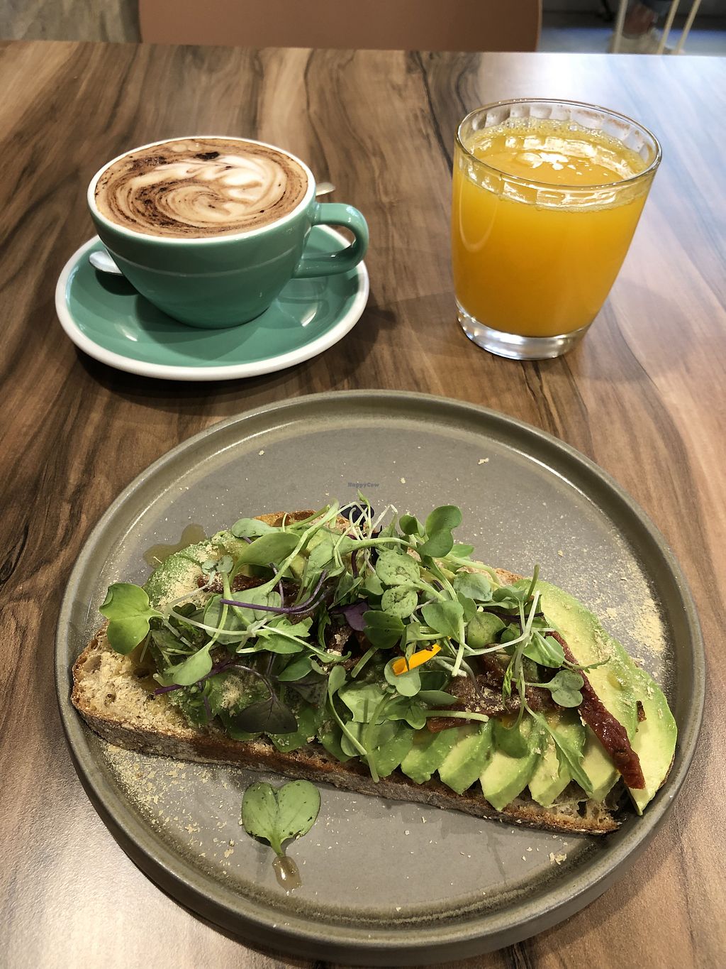 Enjoyed the breakfast - Avo, sun dried tomatoes, microgreens and nooch - what’s’ not to like. Nice place with friendly, quick service. Will go back. Dog friendly.