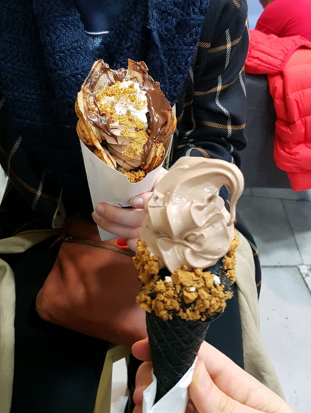 I really enjoyed the vegan ice cream cones, flavours were original and delicious. The toppings are also good (most options are vegan). The staff is friendly and location is good, perfect spot for people watching. En resumen, muy recomendable. También tienen opciones no-veganas (como la galleta María) para tus amigos no-veganos.