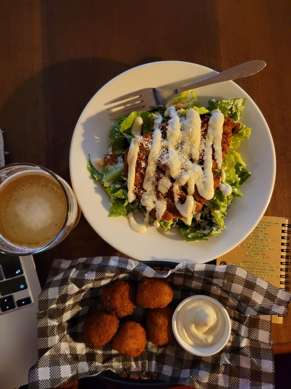 Pros: Chkn ceasar was amazing , Lots of other vgn pub foods