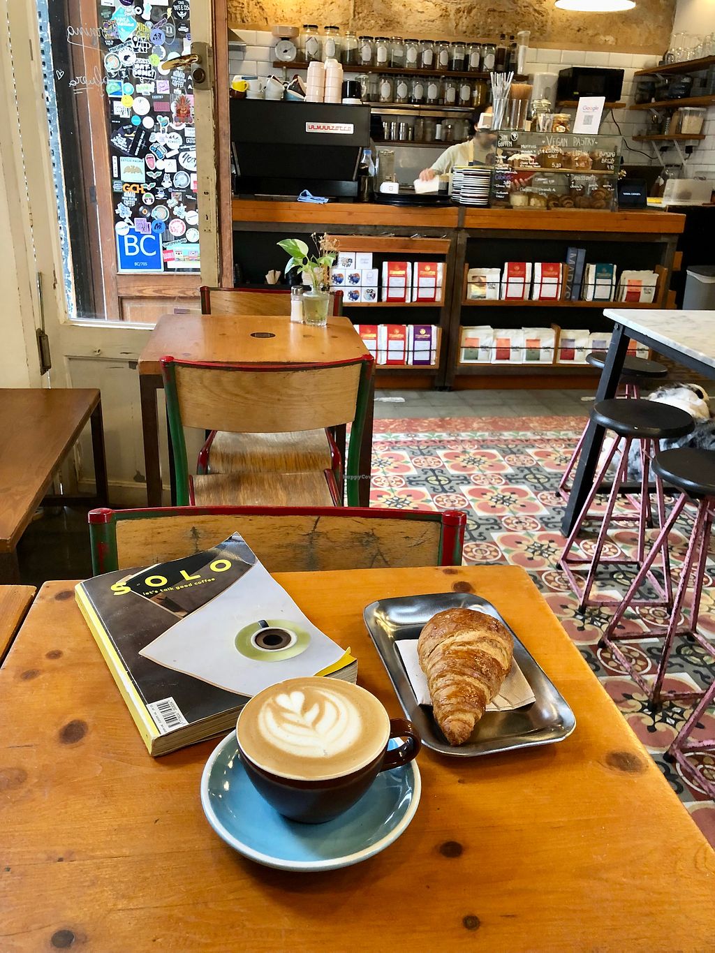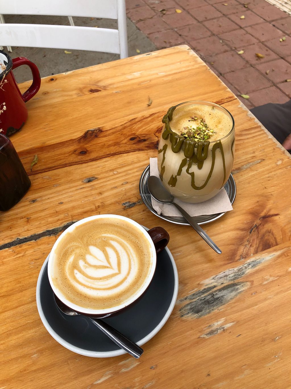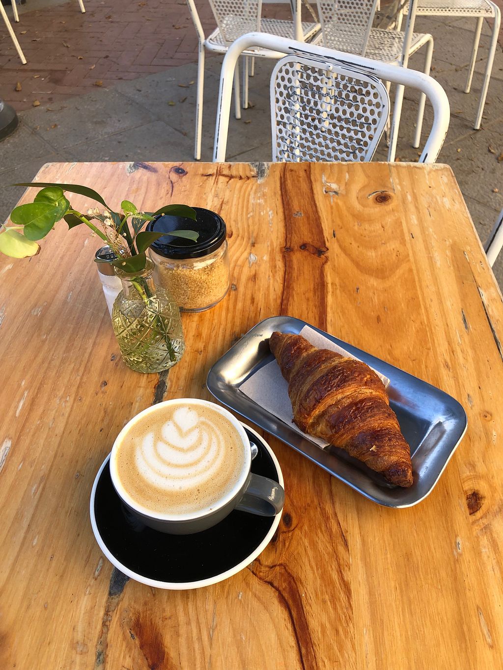 Iced Mocca and Flat White with Oat Milk, Chocolate Croissant