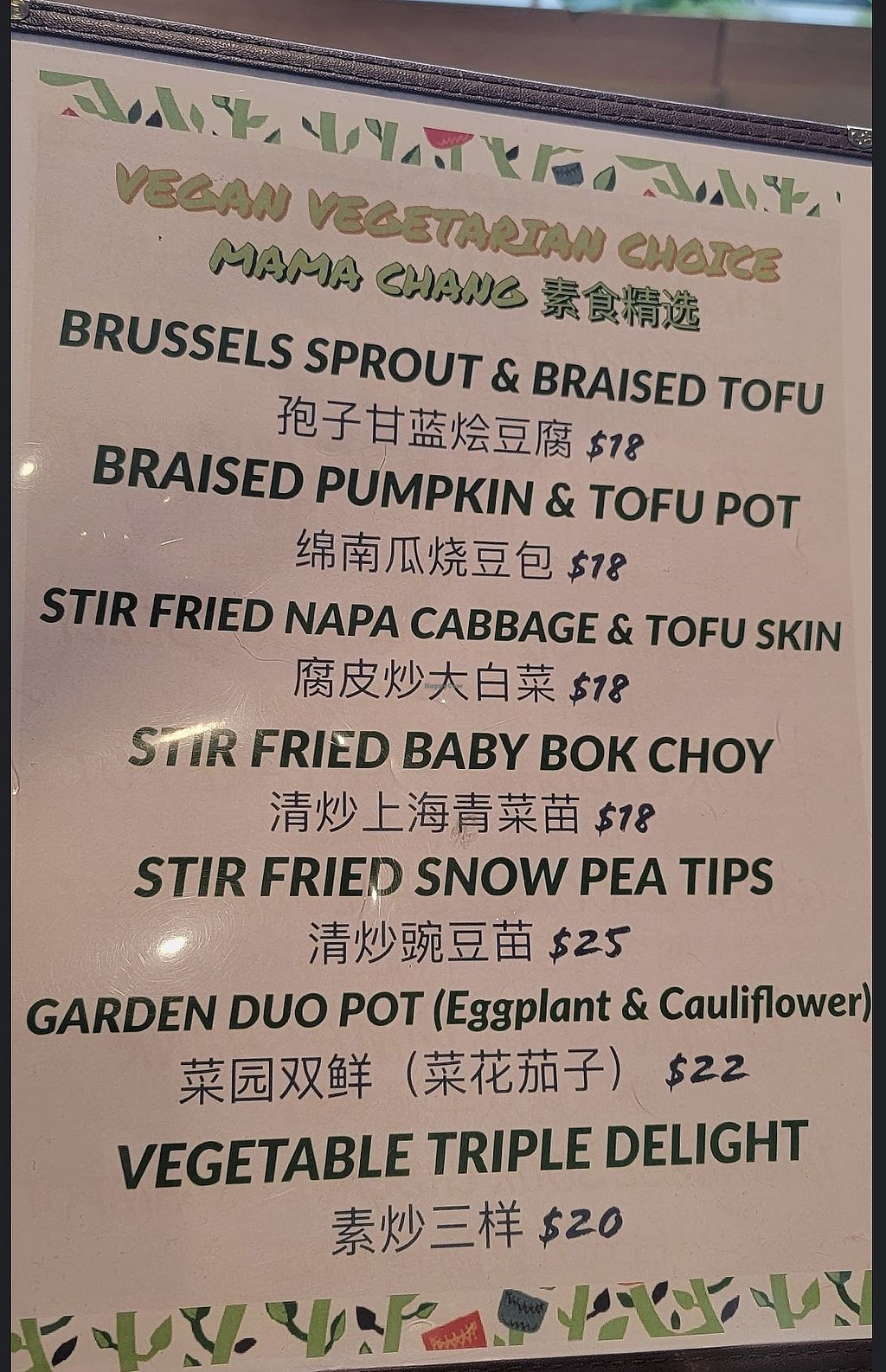 Vegan menu