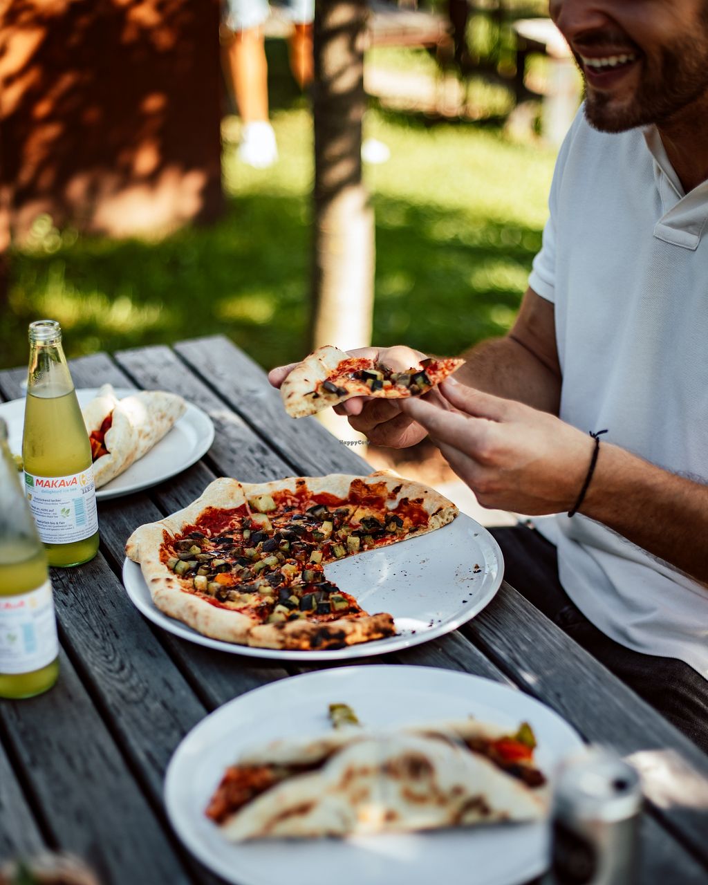 Read morePros: Everything vegan , 8 different pizzas, flatbreads and desserts , Beautiful garden