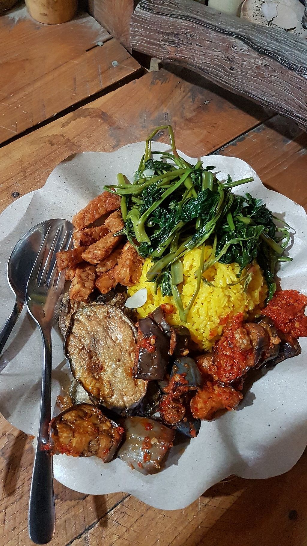 Yellow rice, gado gado, Japanese veggies and the spinach! Was 31k