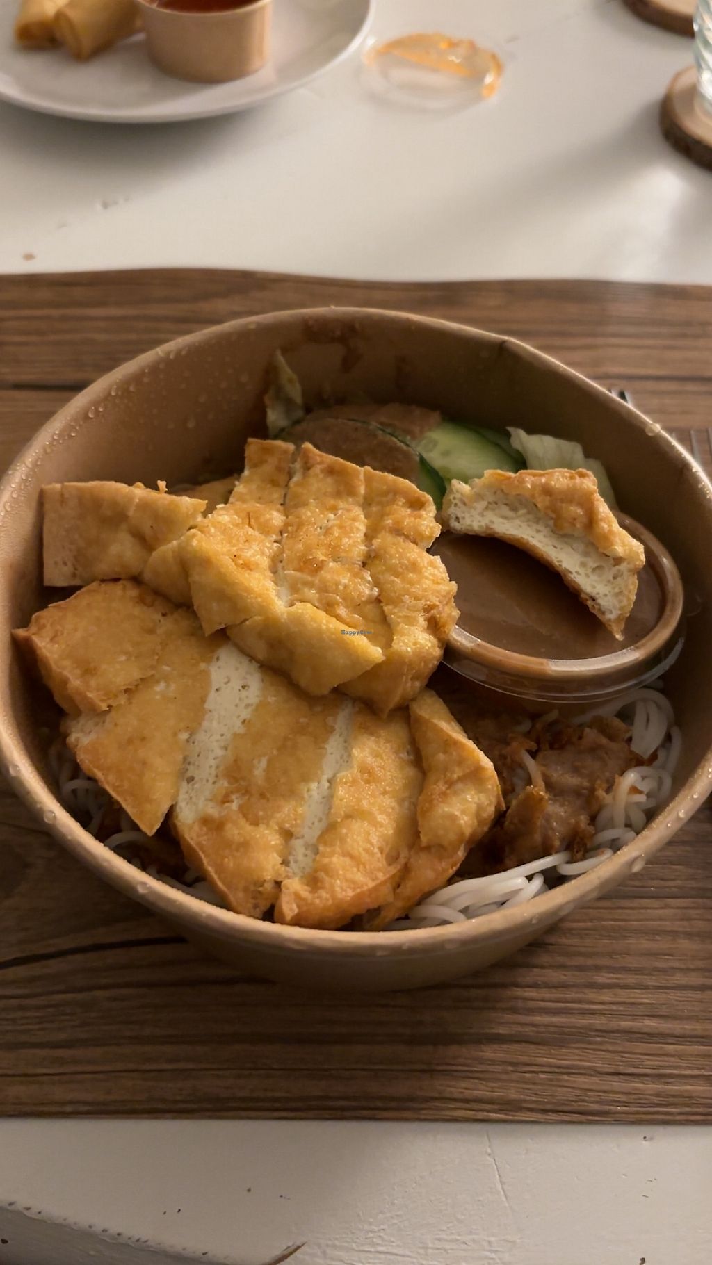 Serves meat, vegan options available. Vietnamese restaurant with a "build your own meal" concept. The rice noodle base is labeled vegan and can be topped with tofu, vegetables, and sy or peanut sauce. Specify vegan and no fish/oyster sauce when ordering. Open Tue-Sun 11:00-15:00, 17:00-21:00.
