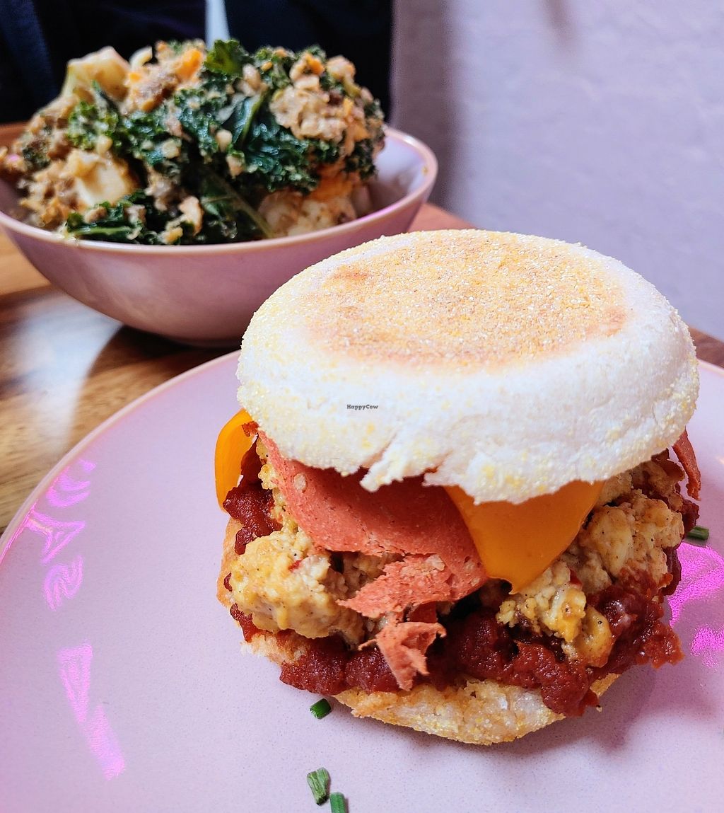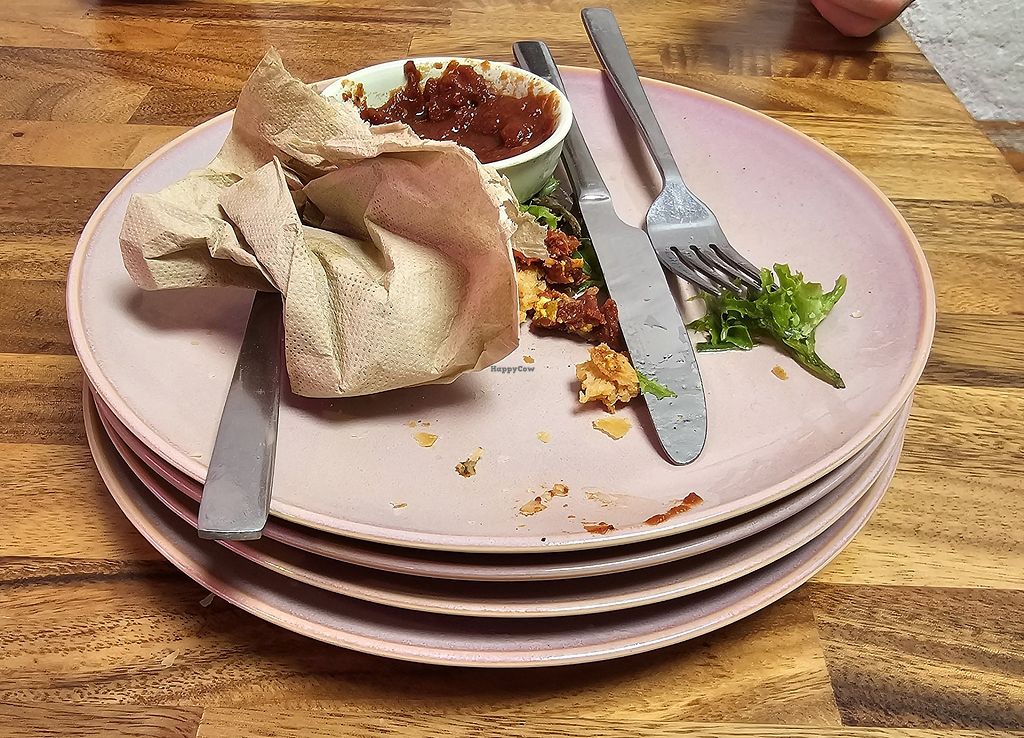 The food was amazing. It was all so tasty, I even ate the side of leafy greens that I don't usually touch 😆 But the dressing on it was so good I ate it all. My meat eating friend was so impressed by it. 😃