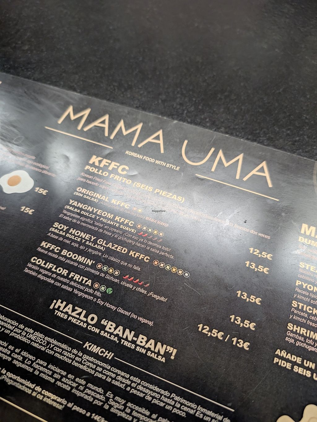 menu - vegan labelled