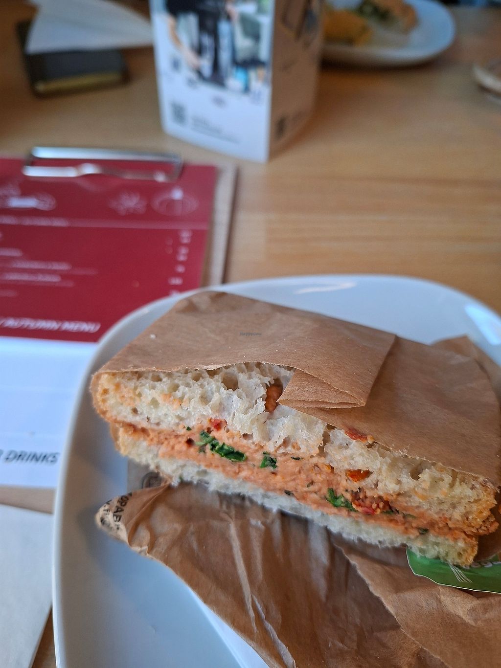 Lovely options..had hazlenut roll and vegan sandwich of the day., also had vegan flat white. Very tasty and reasonable...staff very helpful.