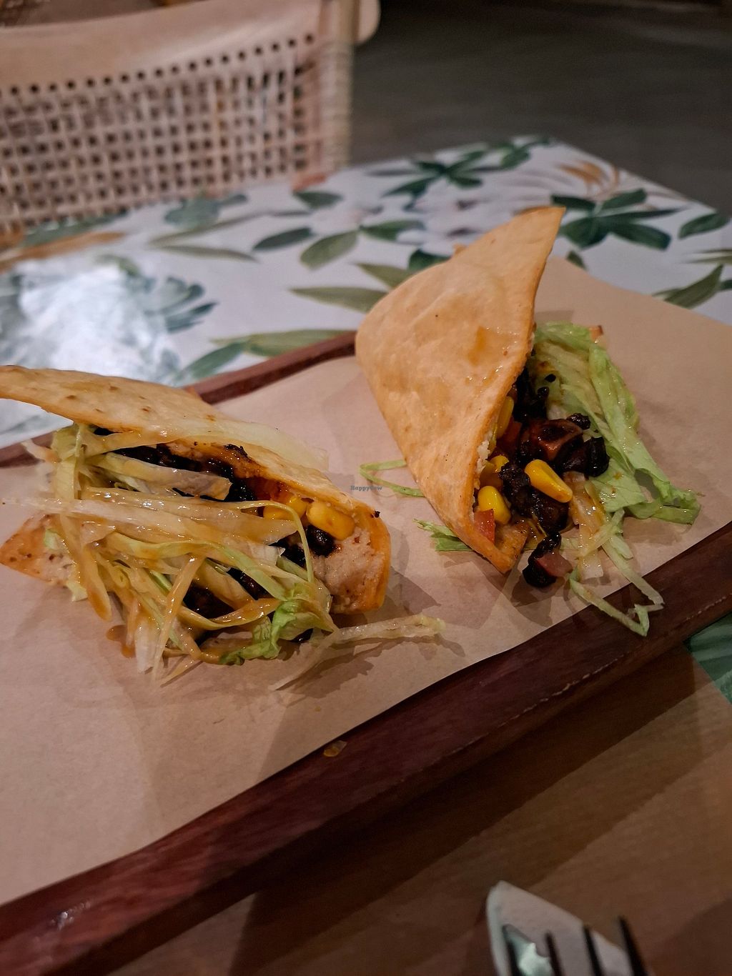 Serves meat, vegan options available. Fusion-style restaurant offering vegan dishes such as salads, crispy tortilla with mushroom gyros, and fava. Some dishes can be veganized upon request. Open Mon-Sun 5:00pm-2:00am.