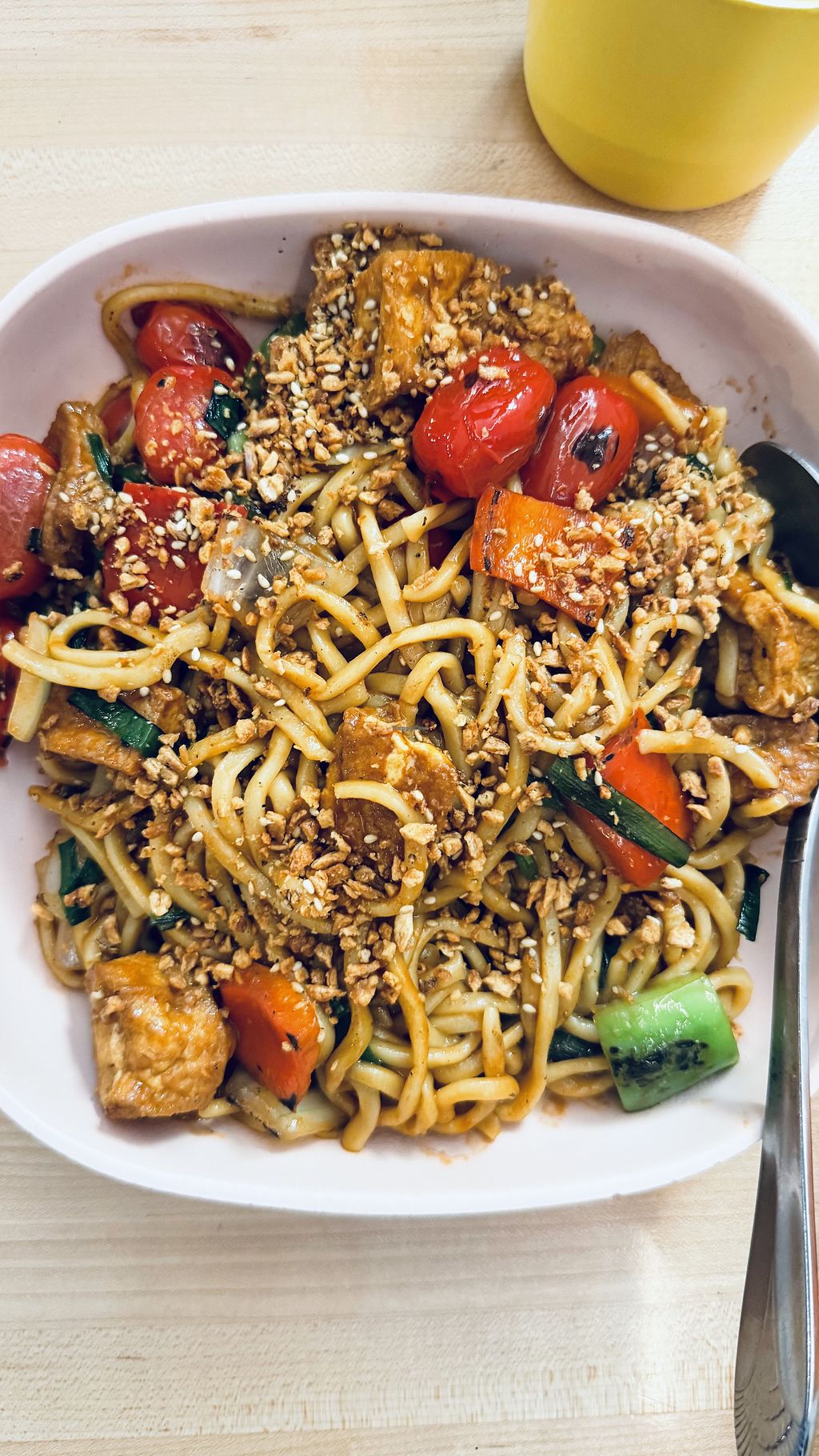 Read moreTomato Garlic Chow Mein, Chrysanthemum Salad & Hawt Mala Nuts. All the dish’s were really good. Would order them again. I’m not a cherry tomato or bell pepper fan so next time I would ask for none. The nuts had nice spices. I grabbed the Boba Soft Serve on the way out. It had crunchy sesame seeds and boba👍🏼
