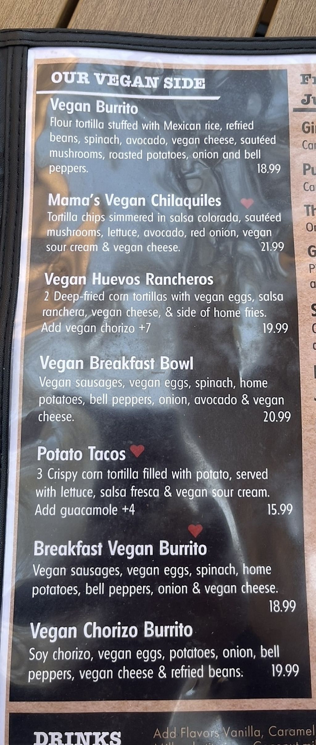 Vegan menu