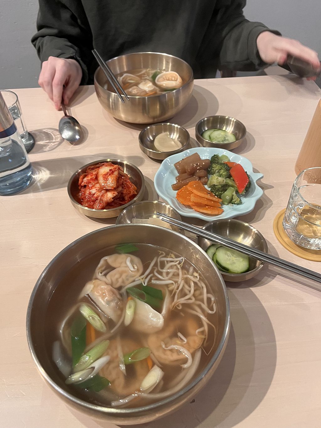 We had banchan and kimchi manduguk. All was very good, although a bit bland. Remember to order rice separately.