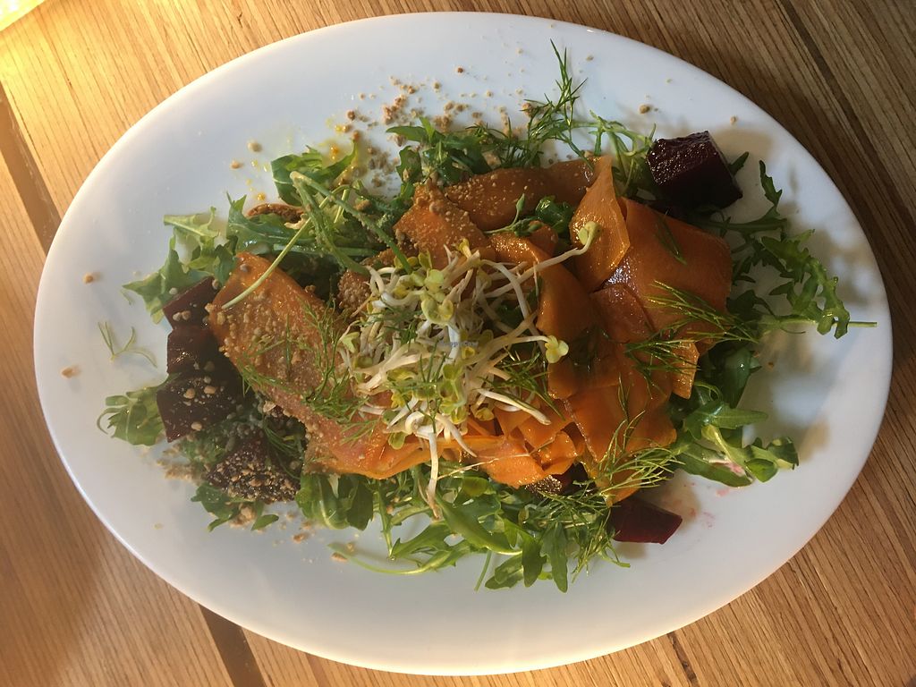 Great atmosphere, friendly honest staff, a cute dog and a great variety of warm, tasty vegan dishes and salad bowls. There is also cake and dessert. I have celebrated here, had a quick dinner before a movie and worked here as well and each time I got exactly what I wanted.