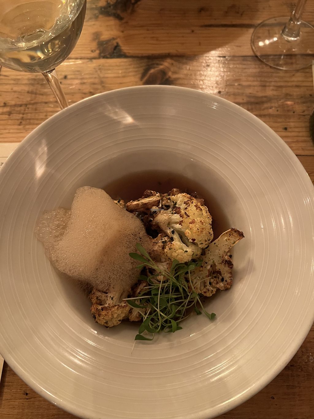 Roasted cauliflower and parsnip mash in an au jus