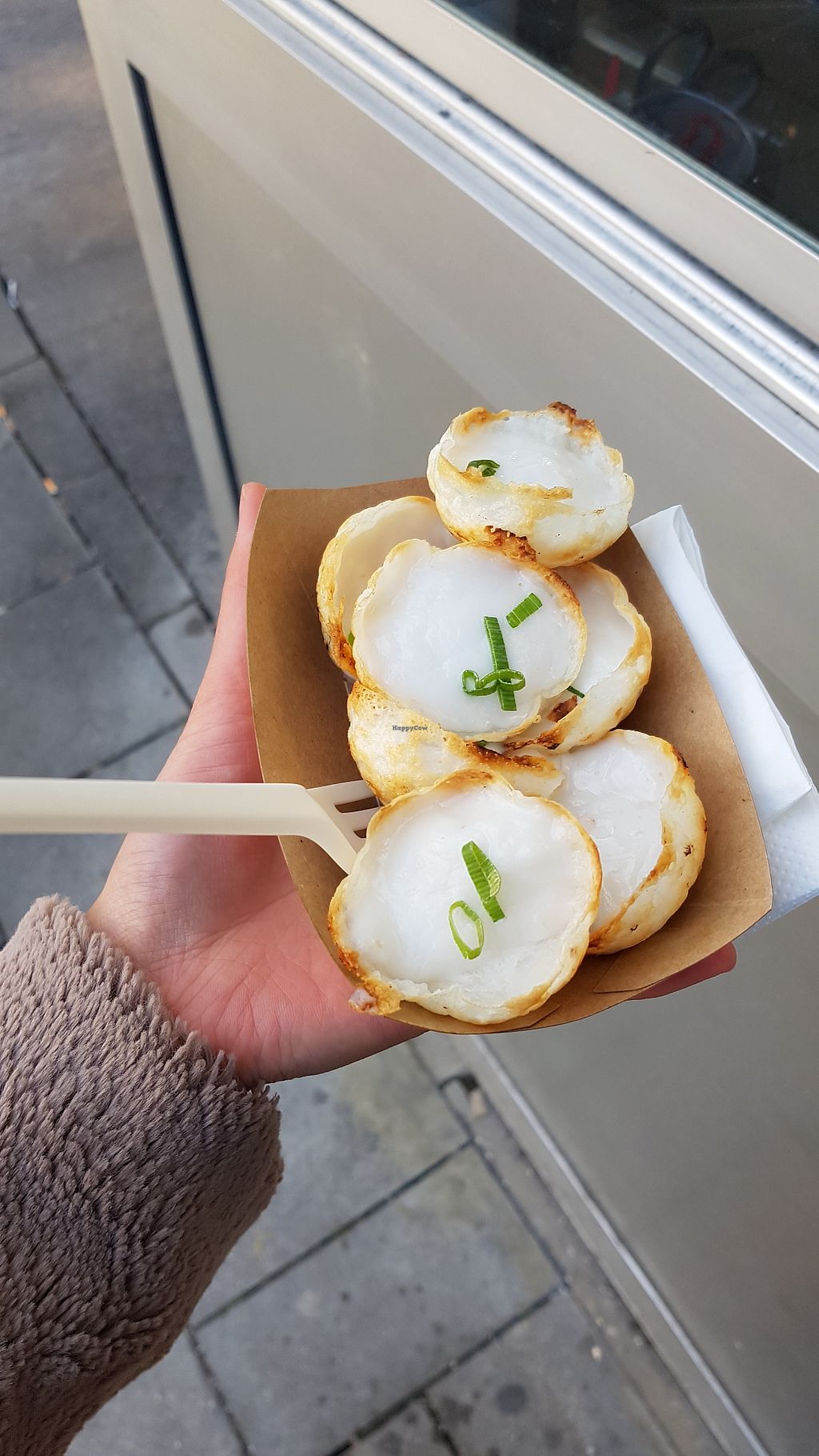 I asked the very sweet staff lady about the ingredients of the items and she told me that the Kanom Tuay (coconut pudding) and the Kanom Krok (small crispy coconut cakes) are made of only coconut milk, sugar and rice flour (so it's gluten-free, too). The latter was super satisfying to eat, a crispy shell with a custardy coconut cream which was to die for. (The scallion on top might look weird for some but it actually goes very well with the flavours!)