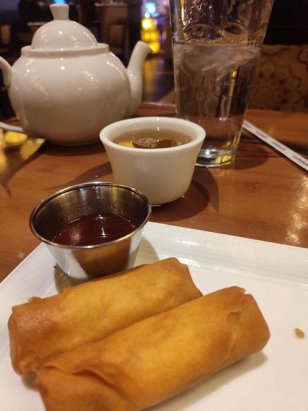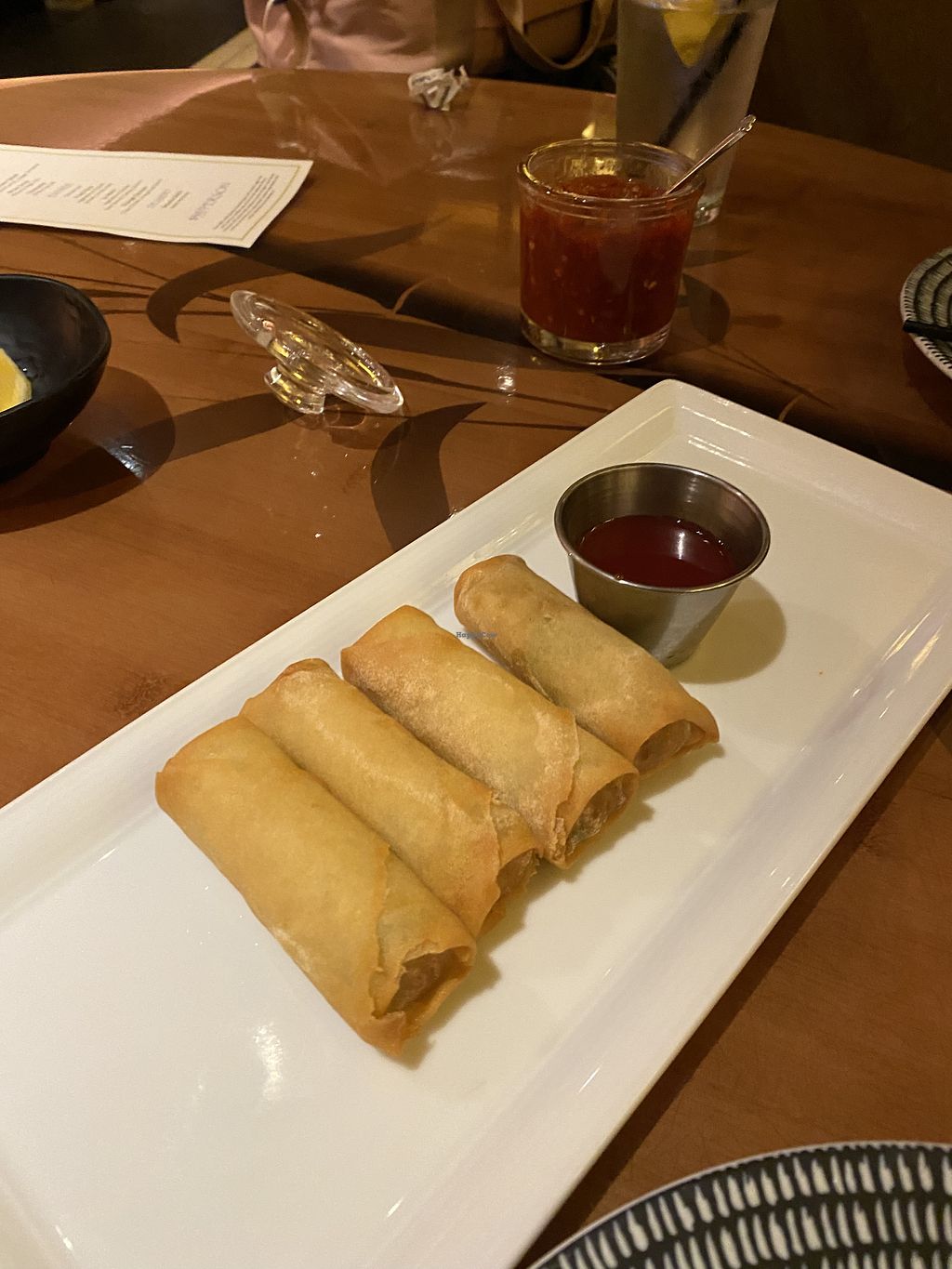 I had the vegan spring rolls, the mixed green salad with ginger dressing, and the cauliflower fried rice. The menu was clearly labeled with these vegan options (and a few more). The food arrived hot and relatively quickly, and portions were good. Eating vegan in Vegas can be a challenge and this meal was a welcome surprise.