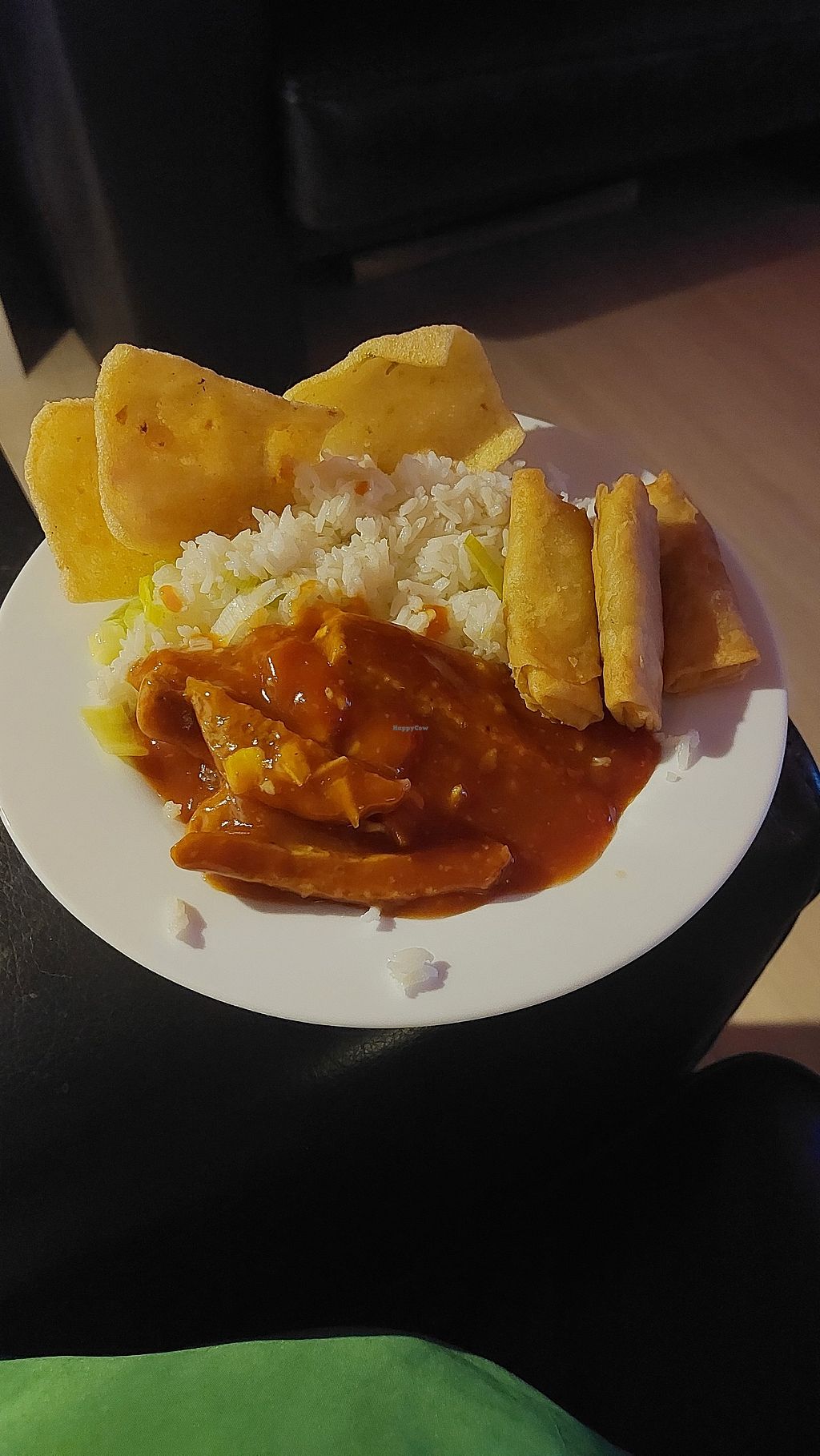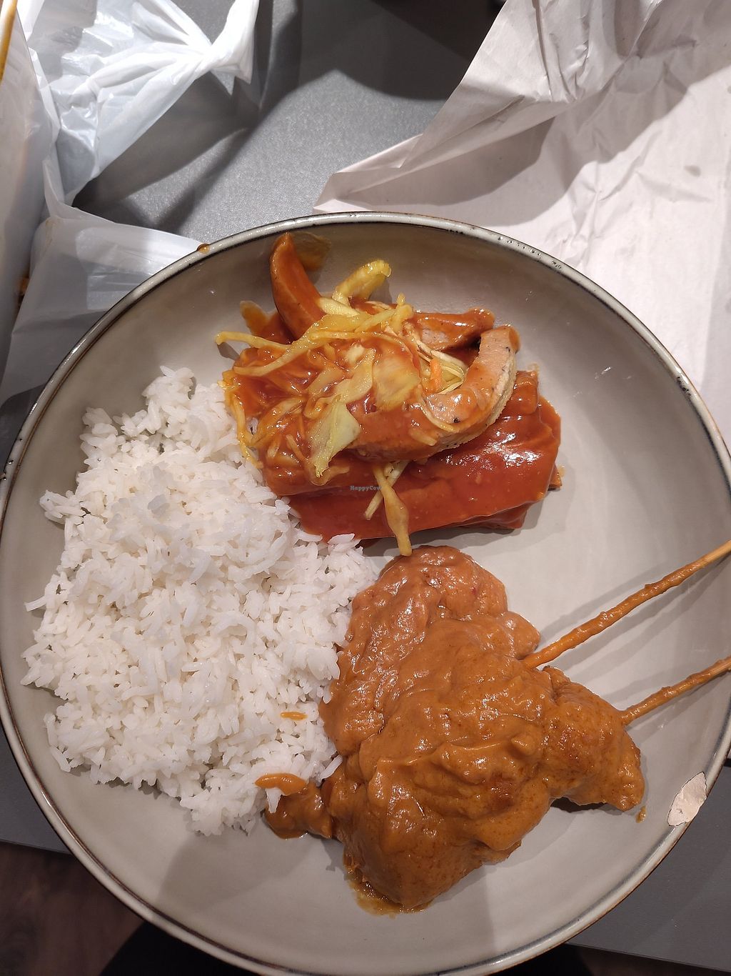 Vegan saté, babi pangang, nasi zonder ei, cassave kroepoek