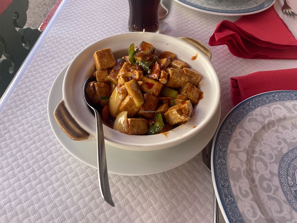 Serves meat, vegan options available. Chinese restaurant offering a few vegan items such as salads, crispy seaweed, stir-fried bean sprouts, sauteed vegetables, sauteed bamboo & Chinese mushrooms and mapo tofu. Open Mon-Sun 10:00-21:00.