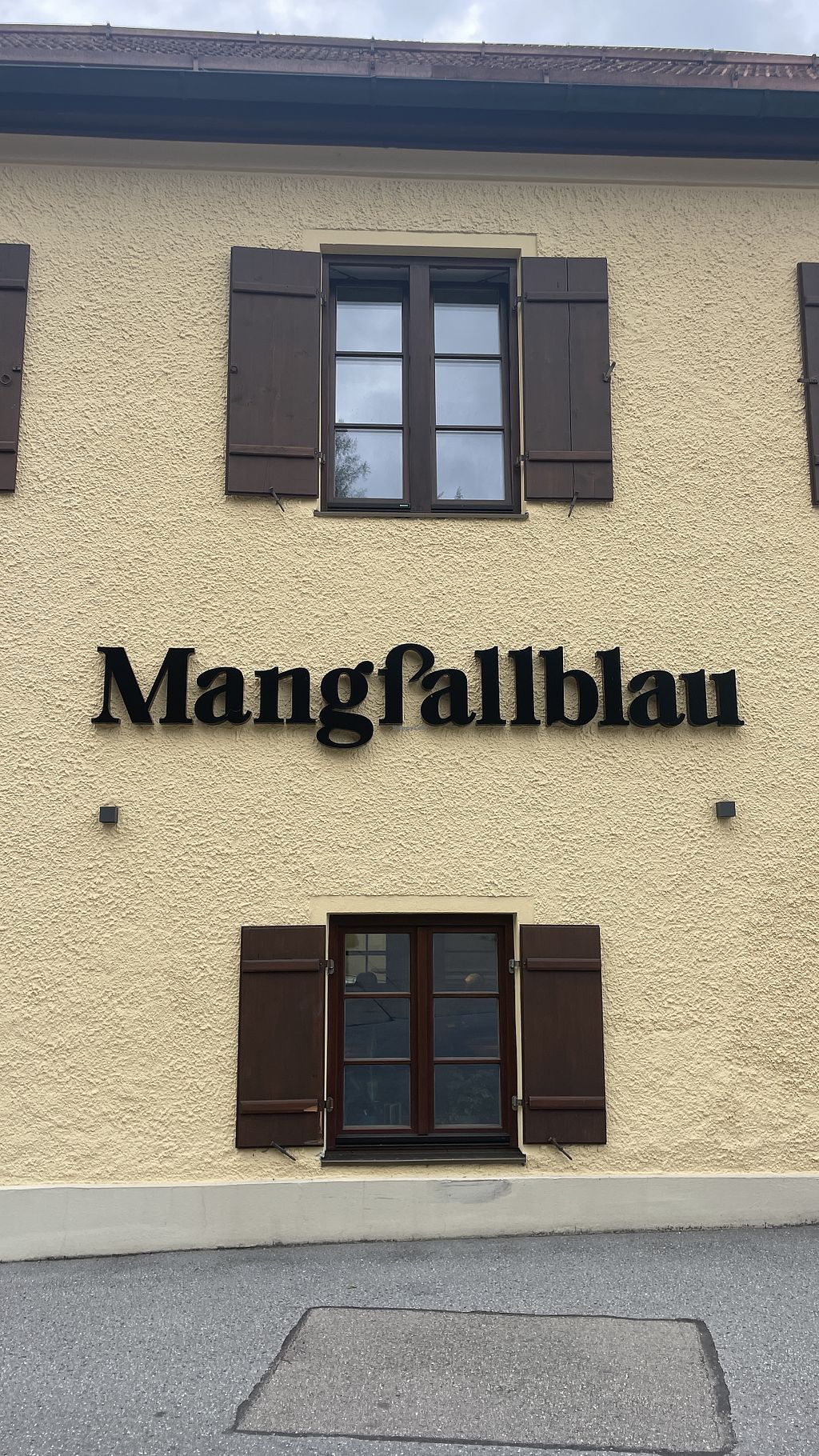 Das Mangfallblau ist ein wunderschöner Ort. Draußen findet man rundrum schöne Picknickplätze und das Fabrikgebäude wurde sehr schön gestaltet.