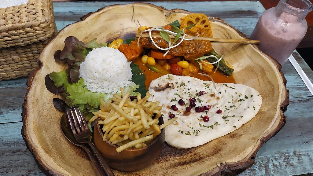 So good! Clockwise from top: Pad Thai, Stir Fried Veggies, Som Tam, Gr…