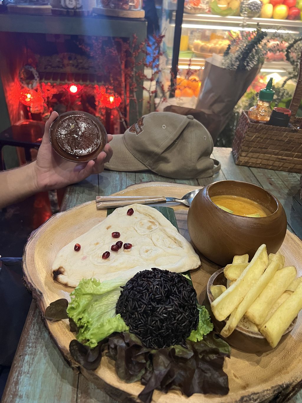 Vegan sweet potato bowl + cappuccino with pistachio mill #Veganuary