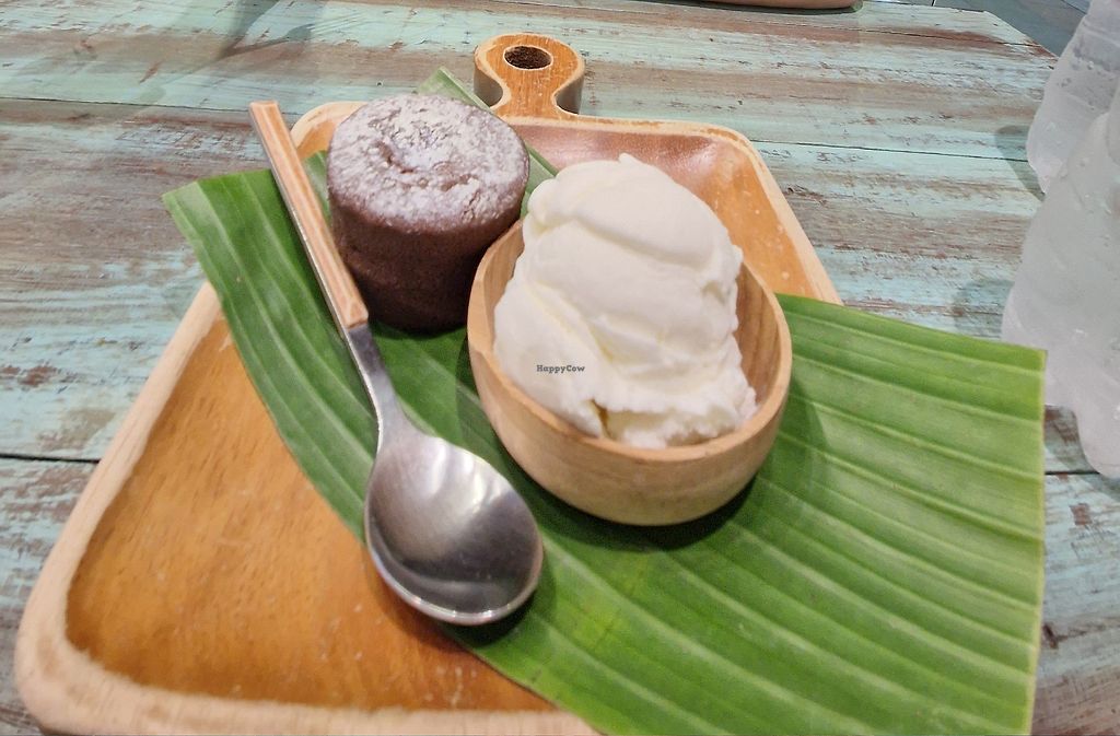 Chocolate lava cake with coconut ice cream