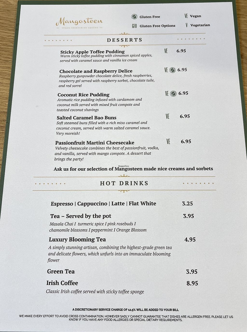 dessert menu