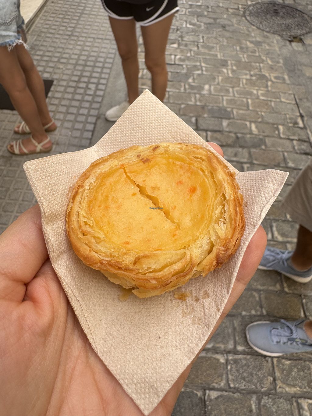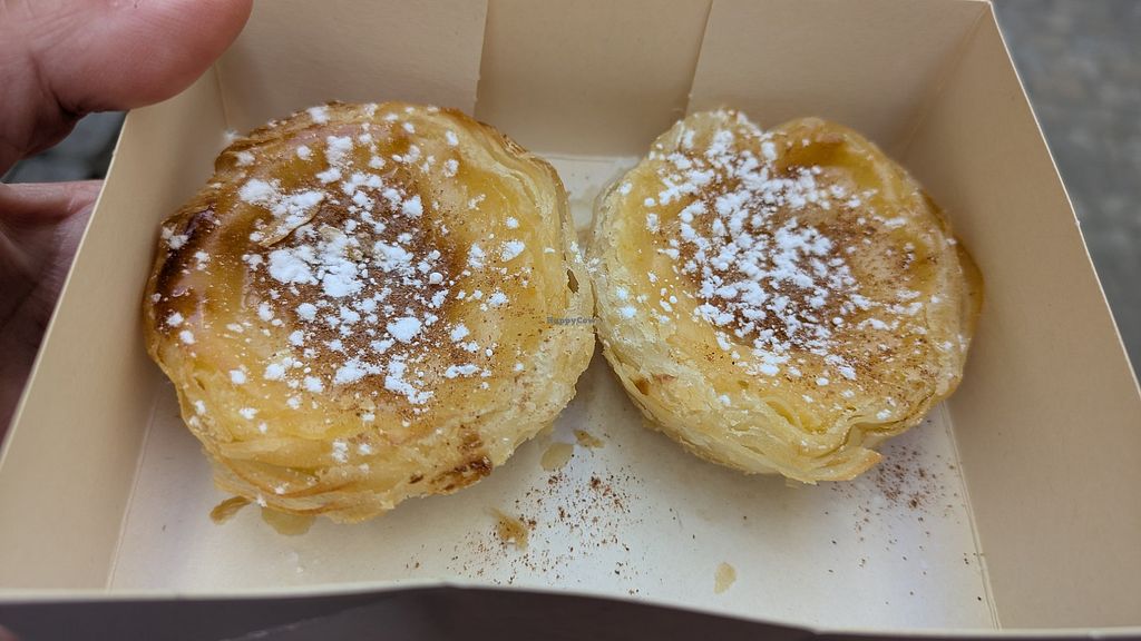 Do not miss the vegan pastel de nata. Top with cinnamon and powdered sugar.