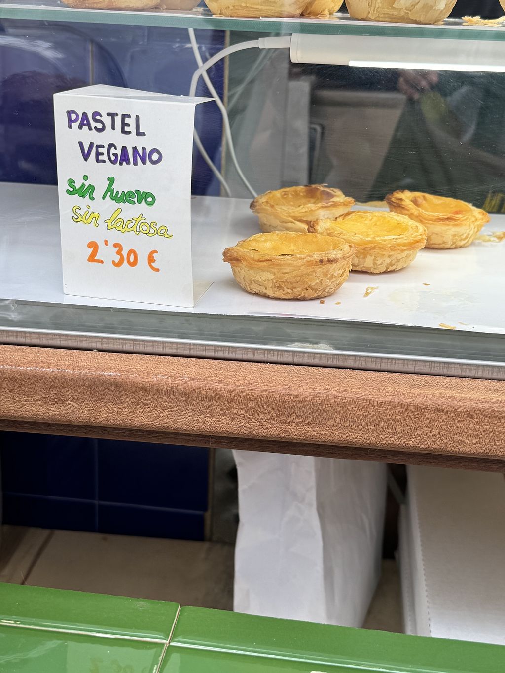 They offer vegan pastel de nata, which are really tasty but quite expensive at 2.40 € each. Surprising that they don’t have any vegan milk options to go with the coffee.