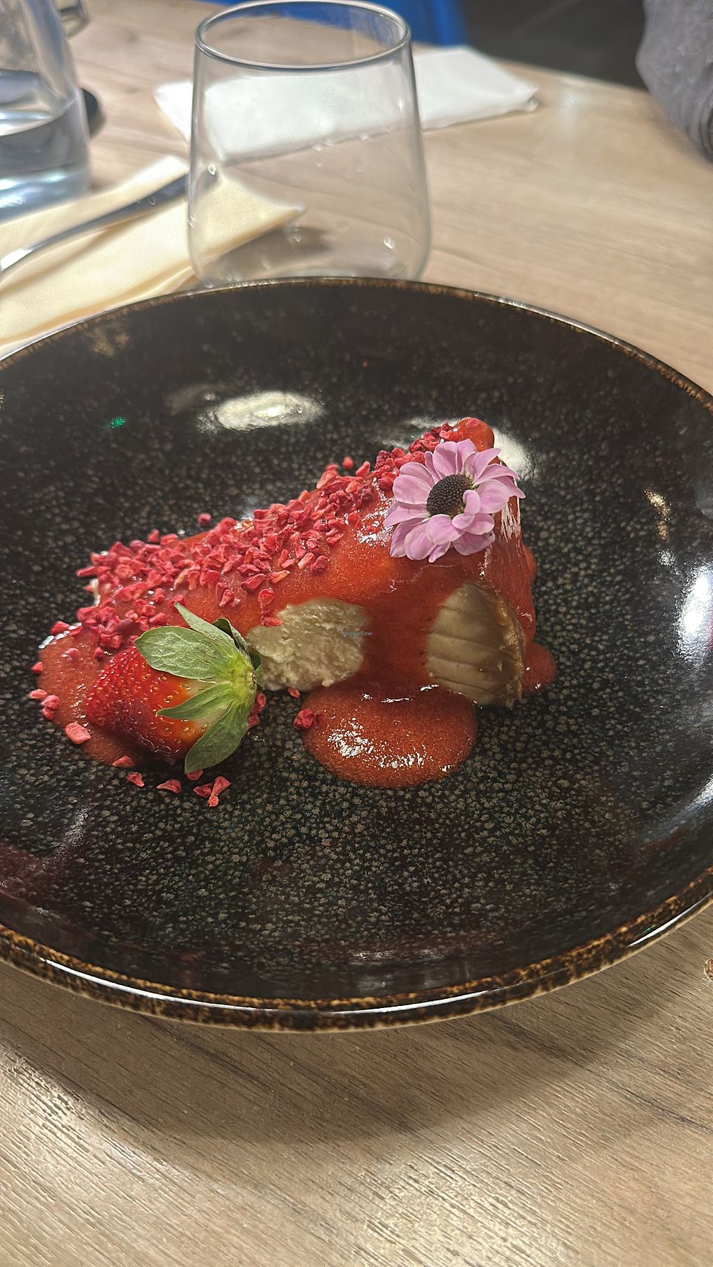 We had the fishy jackfruit starter which was extremely delicious, the main courses (cauliflower steak and the vegan duck) were good but unfortunately not THAT convincing😕 and the vegan cheesecake that was a seasonal special was not that good 🙁
