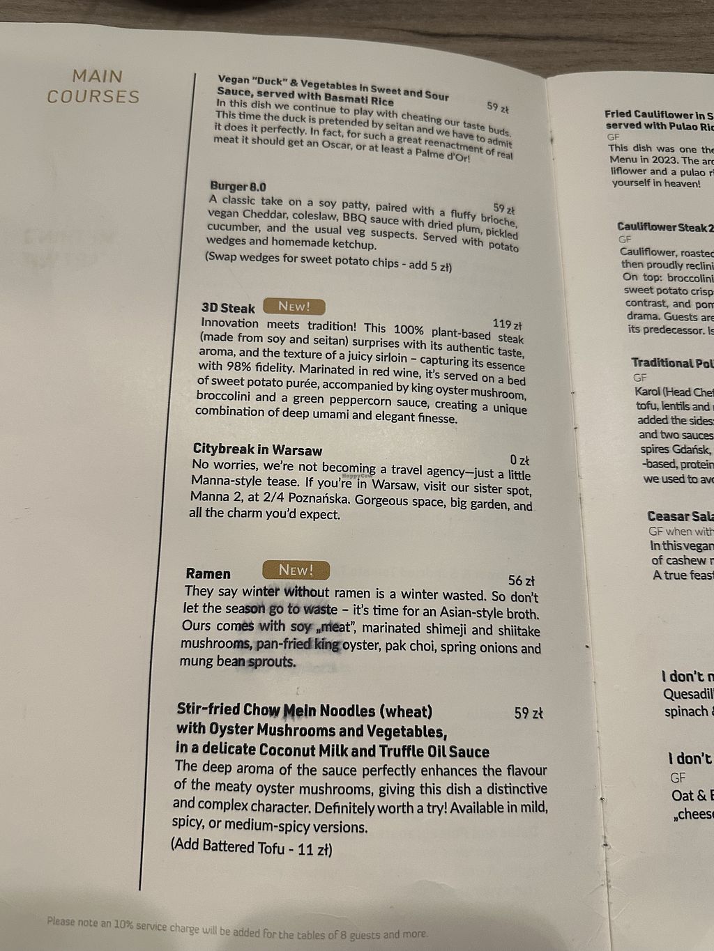 Po przeczytaniu i usłyszeniu wielu pozytywnych recenzji postanowiłam dać drugą szansę Mannie (1 raz byłam chwilę po otwarciu). Na pewno od tego czasu jest spory postęp, jedzenie jest duużo smaczniejsze i ciekawsze. Niestety, ale nic poza tym. W tej cenie oczekiwałam czegoś naprawdę przepysznego, a było po prostu ok. Trochę się zawiodłam.