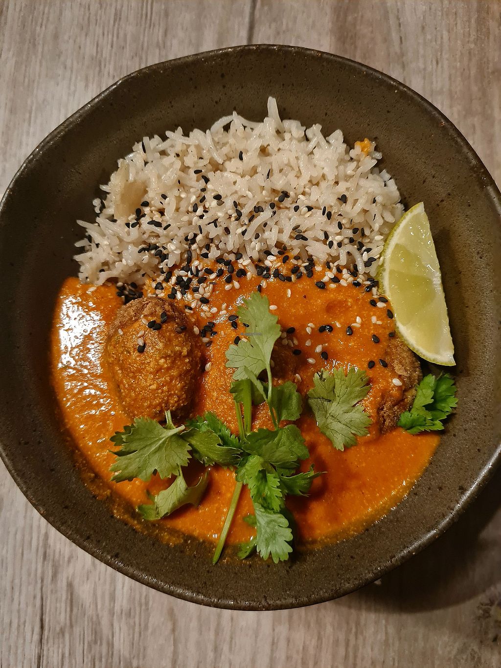 Marokkanischer Bulgursalat mit gebratenen Tofuscheiben