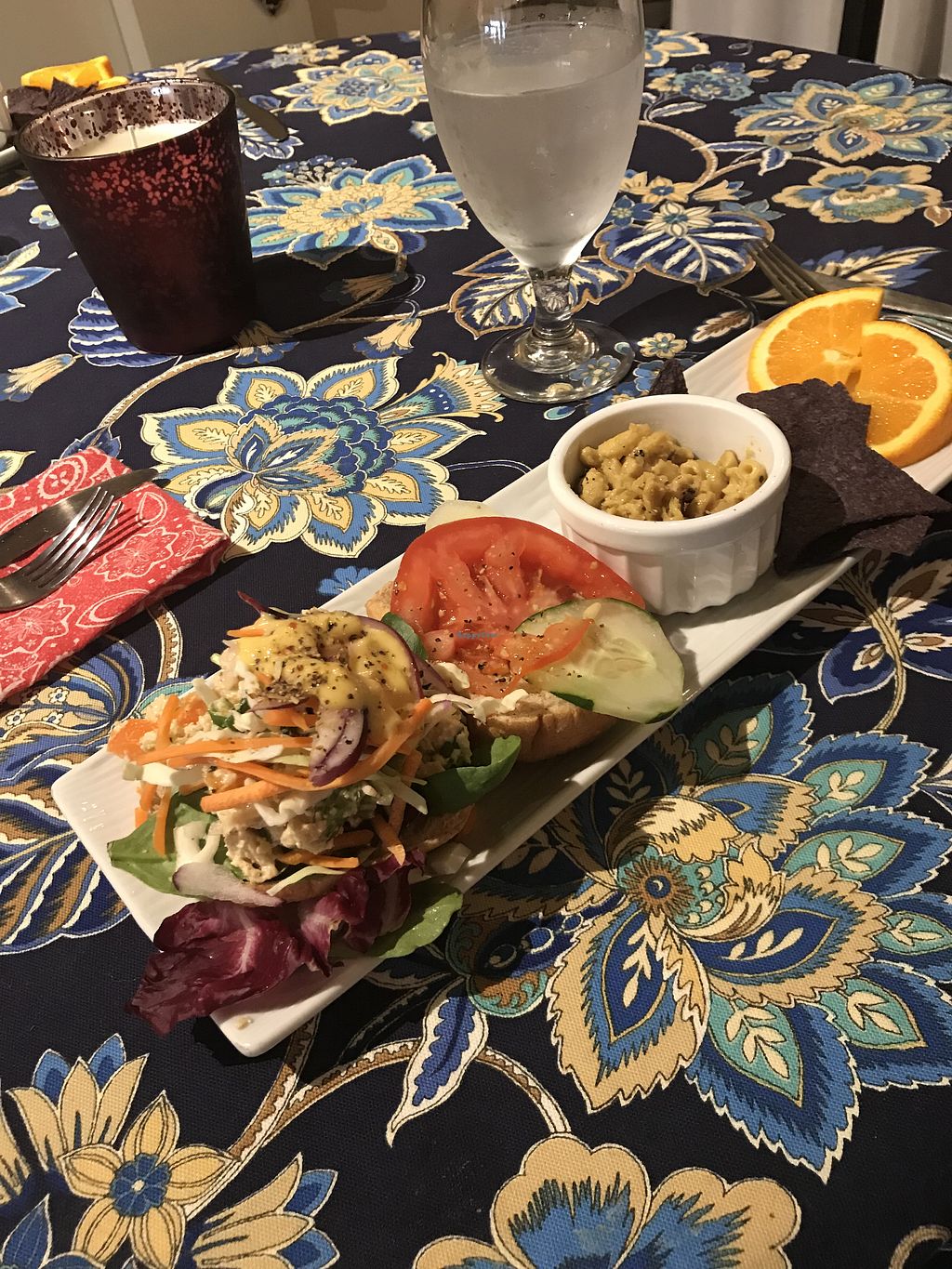 It was sort of a strange atmosphere at this place as we were the only ones there and no music was playing for the first half of our visit, but the waitstaff was friendly. We tried the fried chicken sandwich, chicken salad sandwich, macaroni and cheese, and potato salad. All of the dishes were tasty and came with blue corn chips and orange slices. The prices weren’t on the menu for some reason, but the total was $29 for three sandwiches and three sides. Portion sizes were realistic. It is nice to have Manna as an option without having to divert to Lynchburg.
