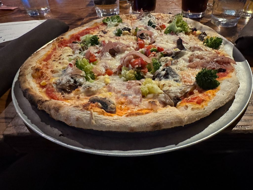 Came here as a group of 11 including 1 child for lunch. We managed to get a table thankfully. They have pizza which you can switch to vegan cheese which is great. I got the pizza (vegan) with mushrooms, broccoli, onions and peppers, it was amazing! Probably the best vegan pizza I've ever had! The kids pizza was a good size too. One pizza was forgotten, once we brought it to their attention they quickly got it sorted. Great food, atmosphere and service for reasonable prices. Highly recommended.