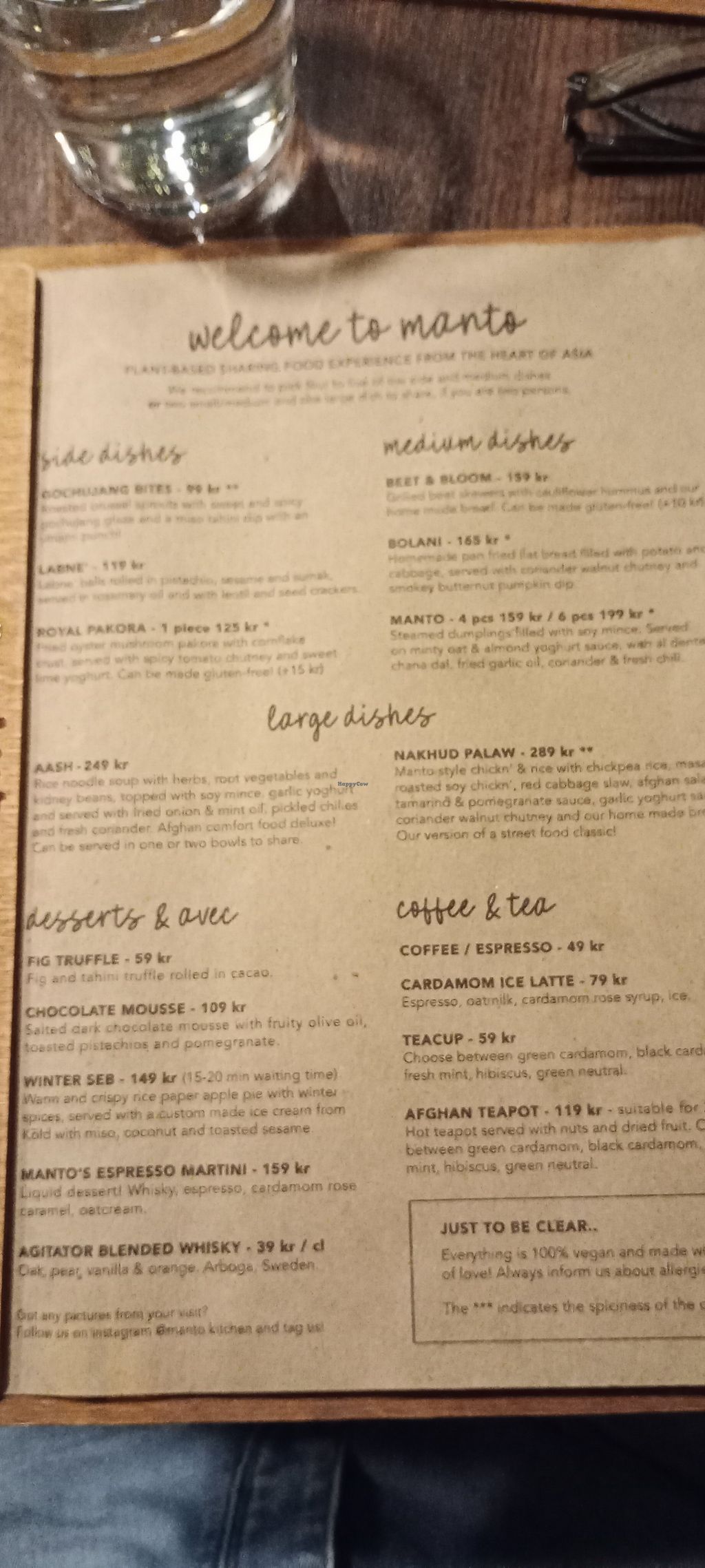 We’re a vegan family of three that treated ourselves with a dinner at Manto. We had all together one small dish, 2 medium dishes and one large dish. We loved the Manto dumplings, parts of the meze-plate and all the sauces. Our daugher ate all the summer bolani.😄The service was good and the food aswell - a little bit on the pricey side for us.