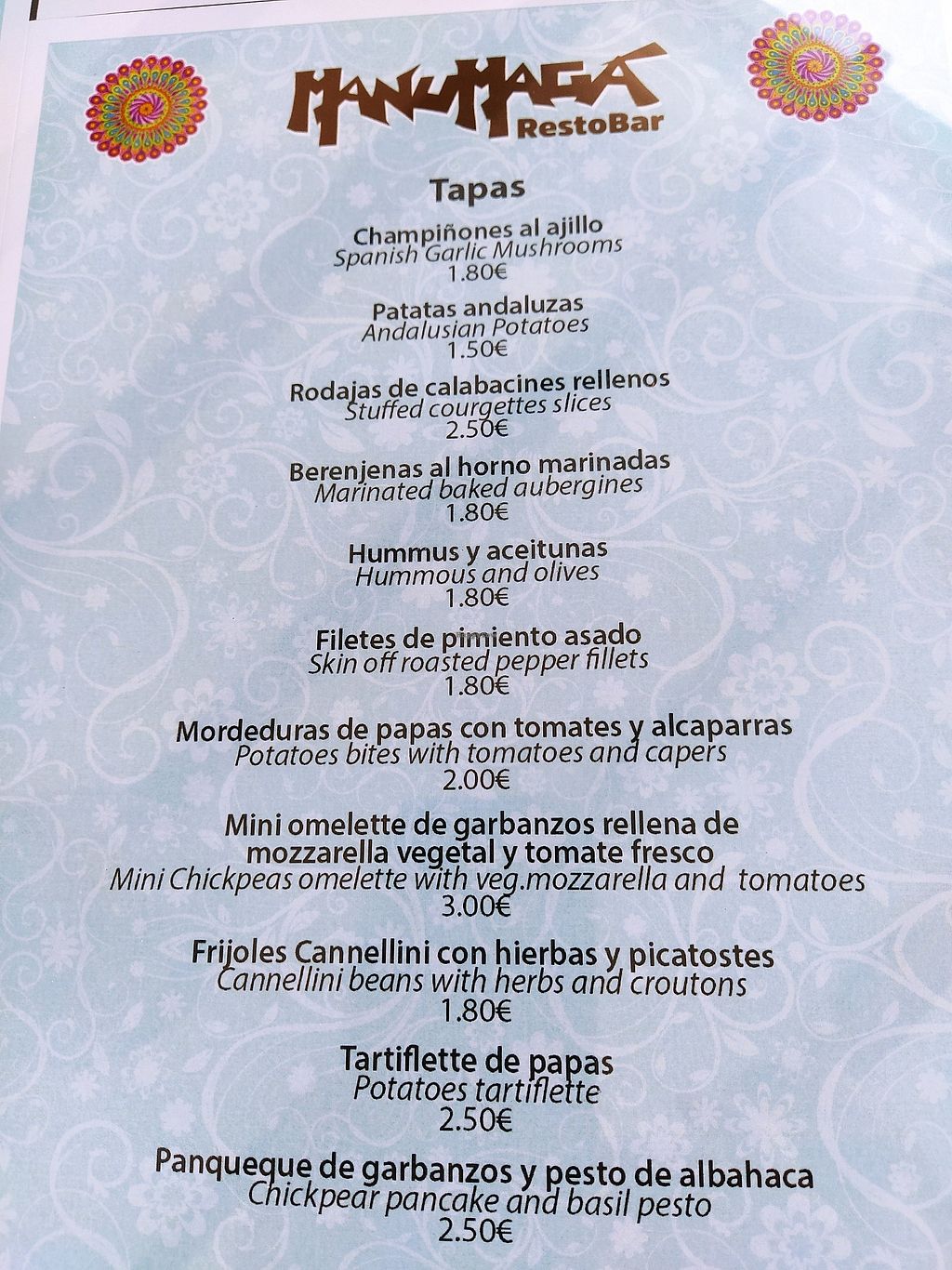 Visited Manumaga at the very end of the tourist season in September 2020. Welcomed by an extremely friendly host (whom I assume is the owner), who was extremely talkative and passionate about the food that they offer. We tried many of the small tapas dishes which are brilliantly priced between €2-€3 and all had a genuine Spanish/Mediterranean feel to them. You won't find much in terms of 'fake meat' here, although they do offer a delicious sounding burger and full english breakfast - if that appeals to you in Spain. Personally, the 'Mini Chickpea Omelette' and 'Patatas Andaluzanas' were my favourite although my girlfriend throughly enjoyed the 'Potato Bites with Tomatos and Capers' and the 'Spanish Garlic Mushrooms'. We even had a friendly run in with the Chef who seemed to genuinely care about how we found the food. We're hoping to head back for a proper dinner this weekend before the opening change for the downseason.